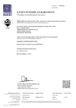 PLK product has been complying with regulatory and statutory requirement with series of MS standard, BS standard and IEC standard.
